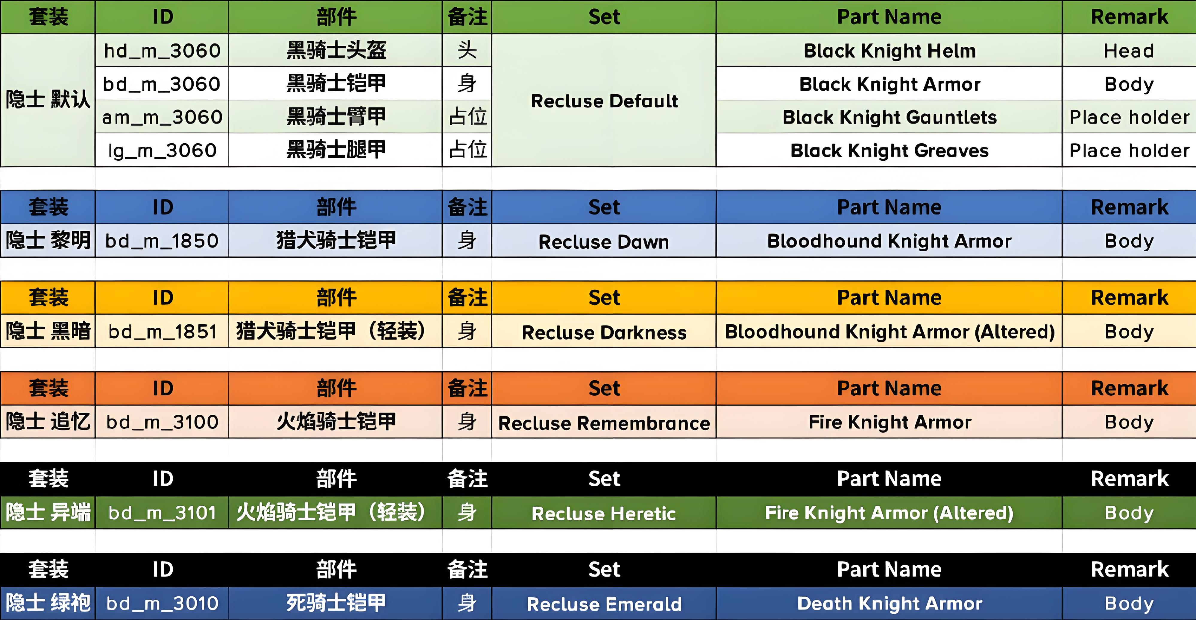 若想把此MOD的部件更换为别的本体部件,可以参考以下列表更改文件名。注意,这么做可能会引起穿模